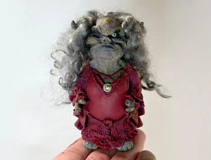 Materials: Polymer clay, mohair wool, acrylic paint