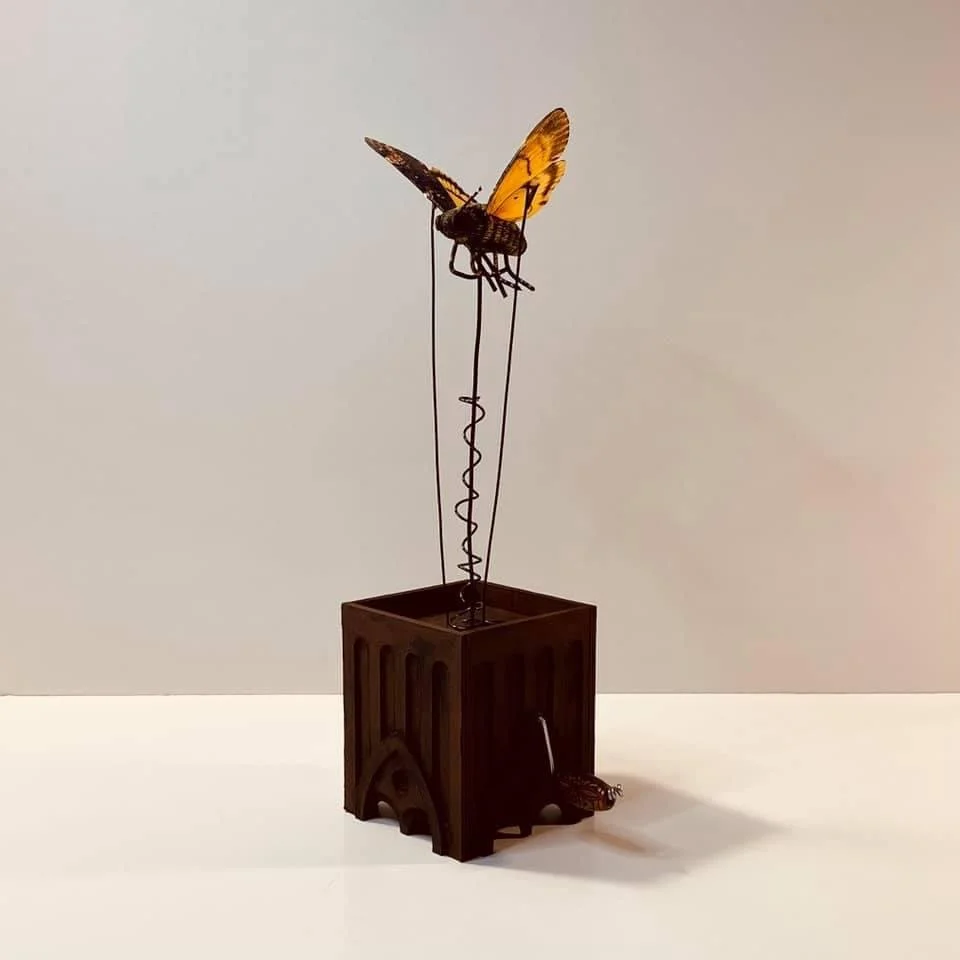 Materials: Polymer clay, paper, wire, chipboard, beads, acrylic paint