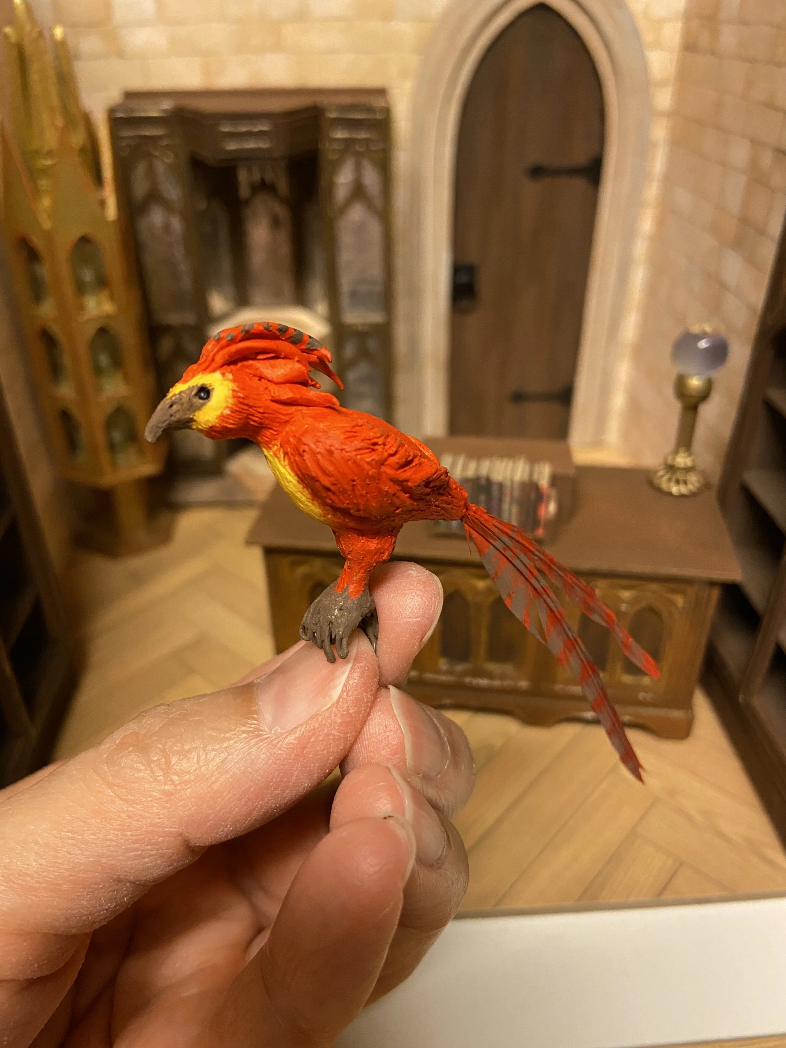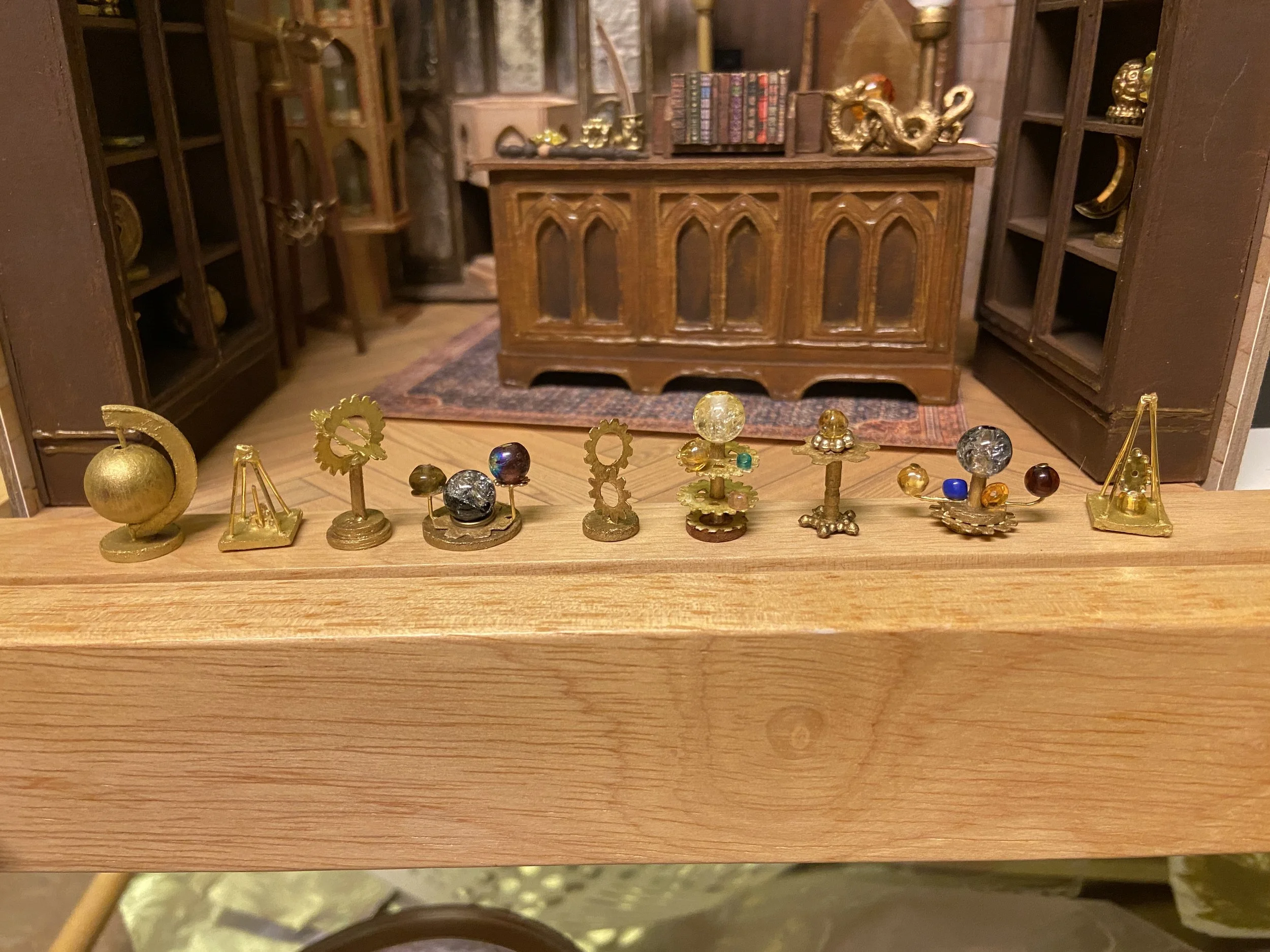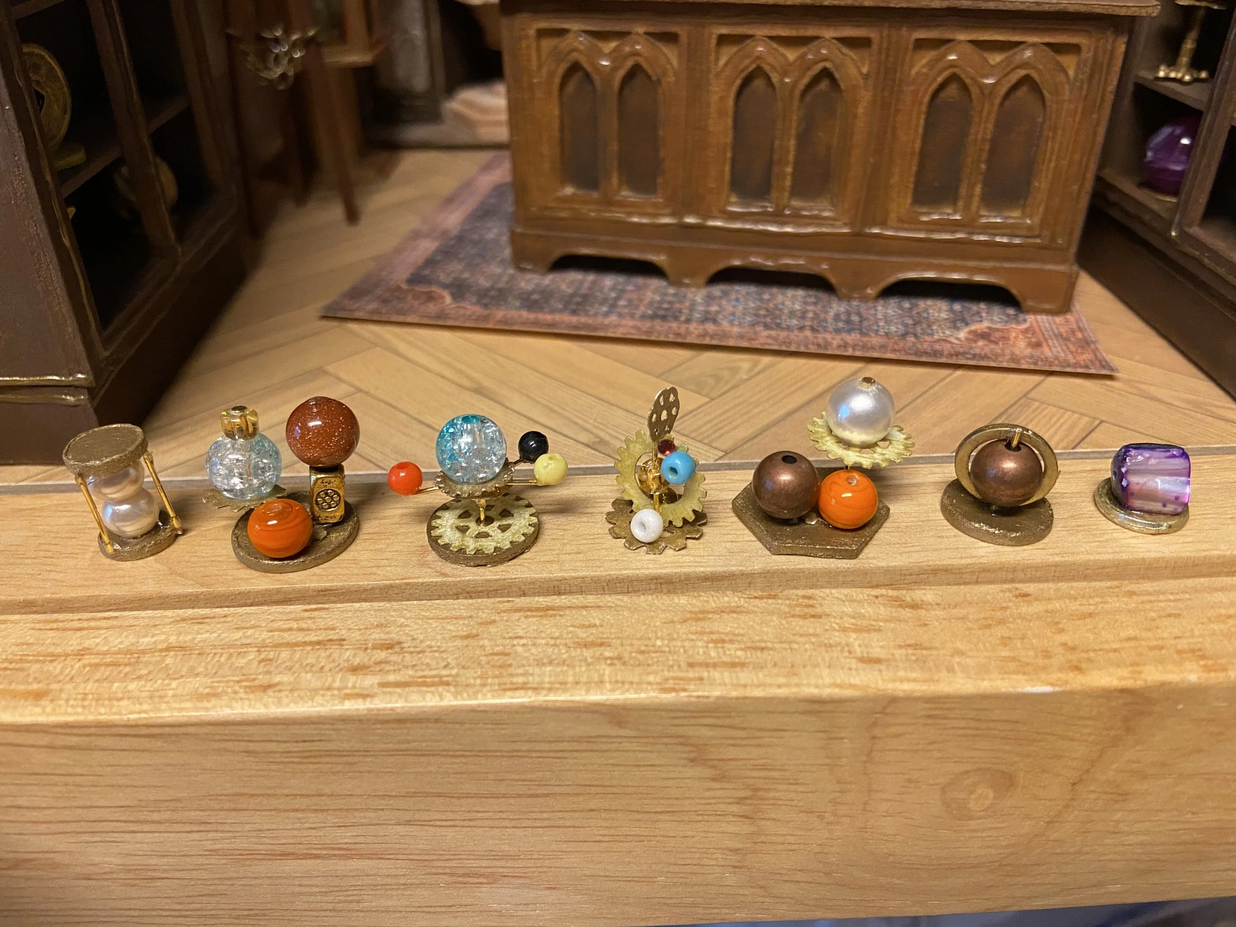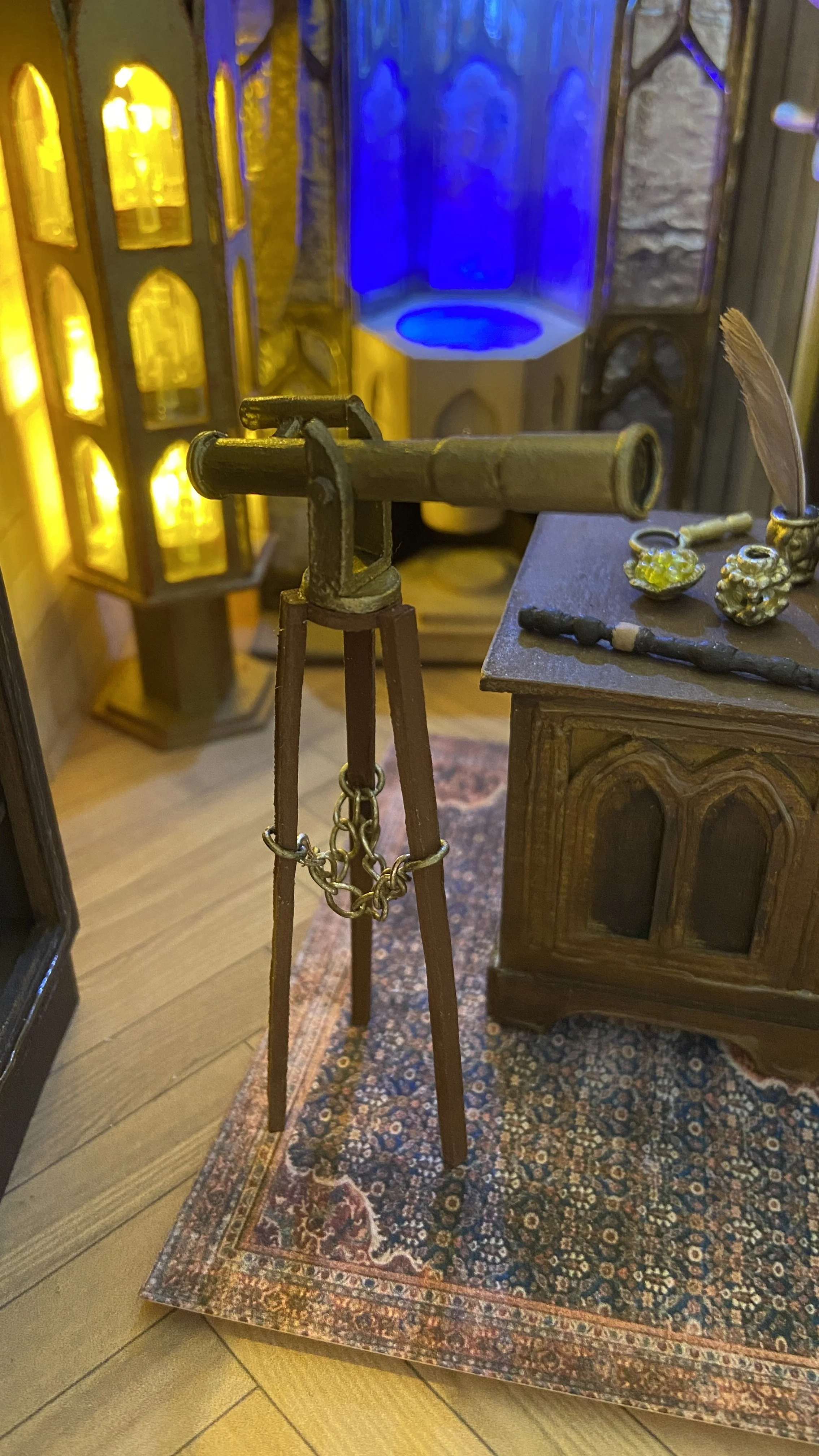 Materials: Chipboard, card stock, LEDs, resin, polymer clay, beads, fabric, acrylic paint