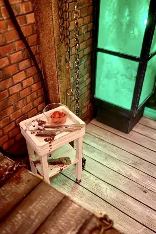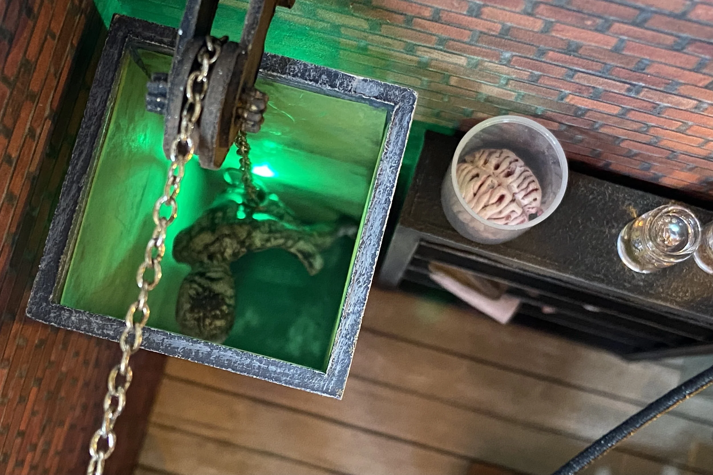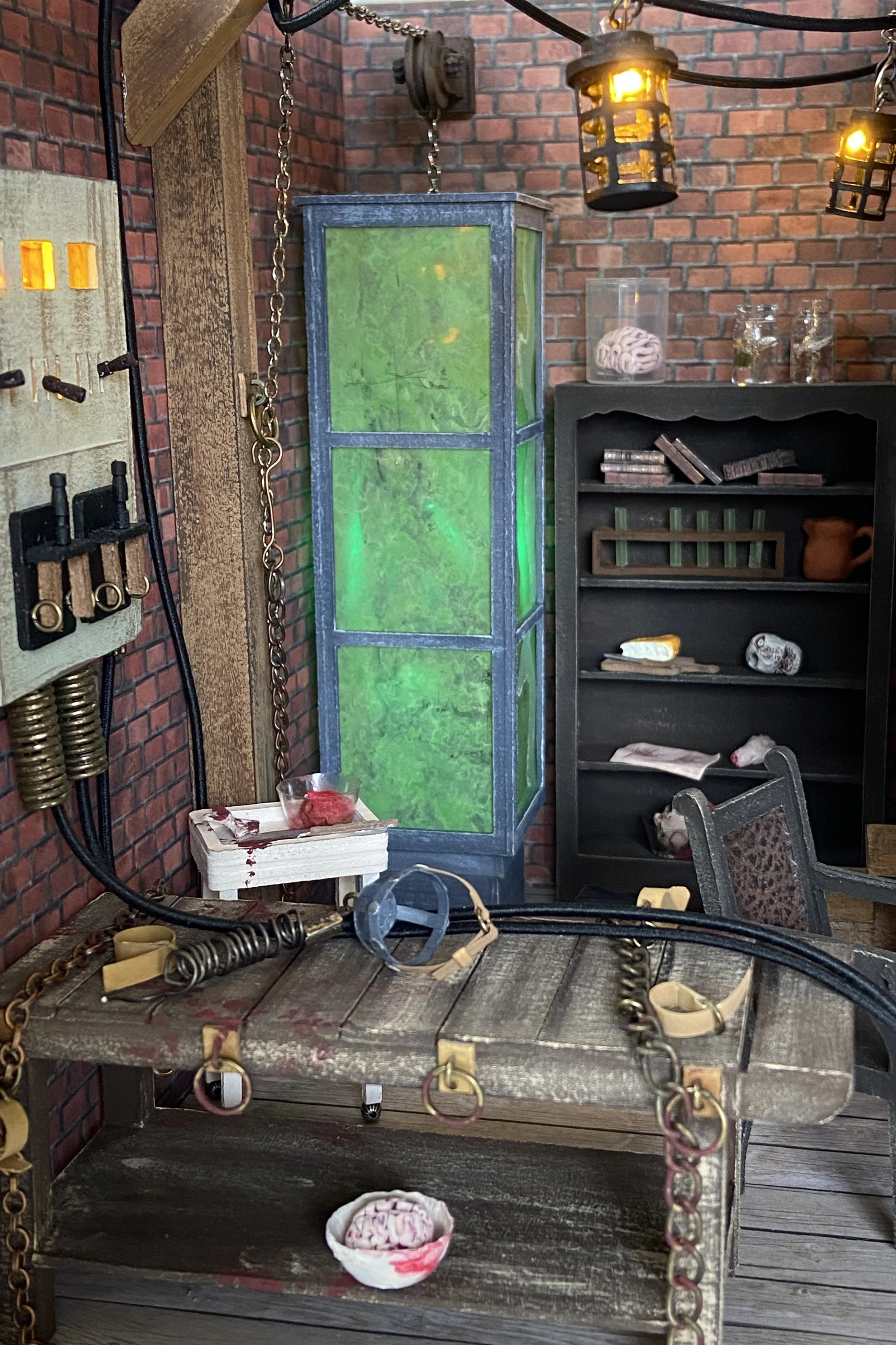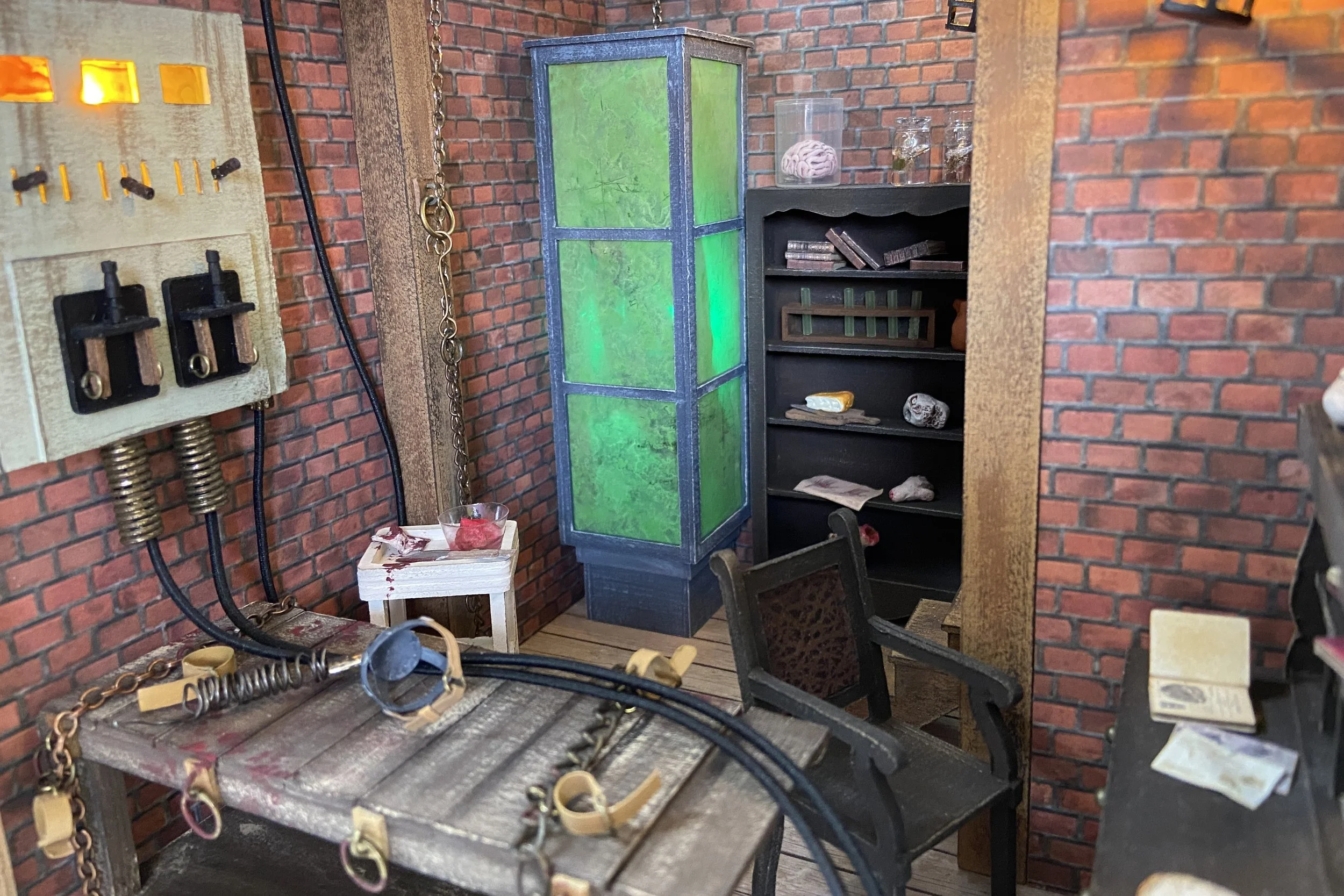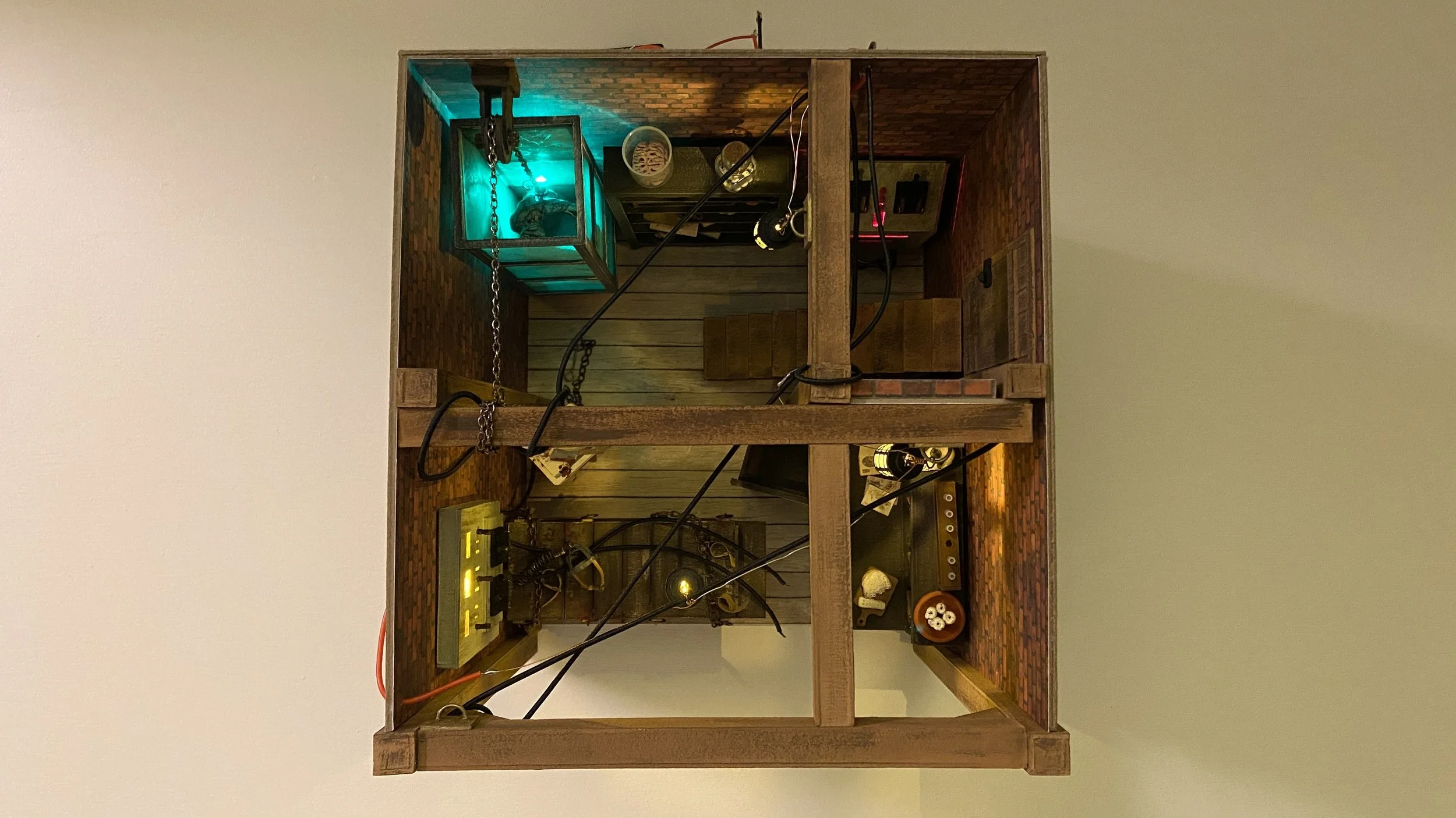 Materials: Chipboard, card stock, acetate sheet, LEDs, resin, polymer clay, acrylic paint