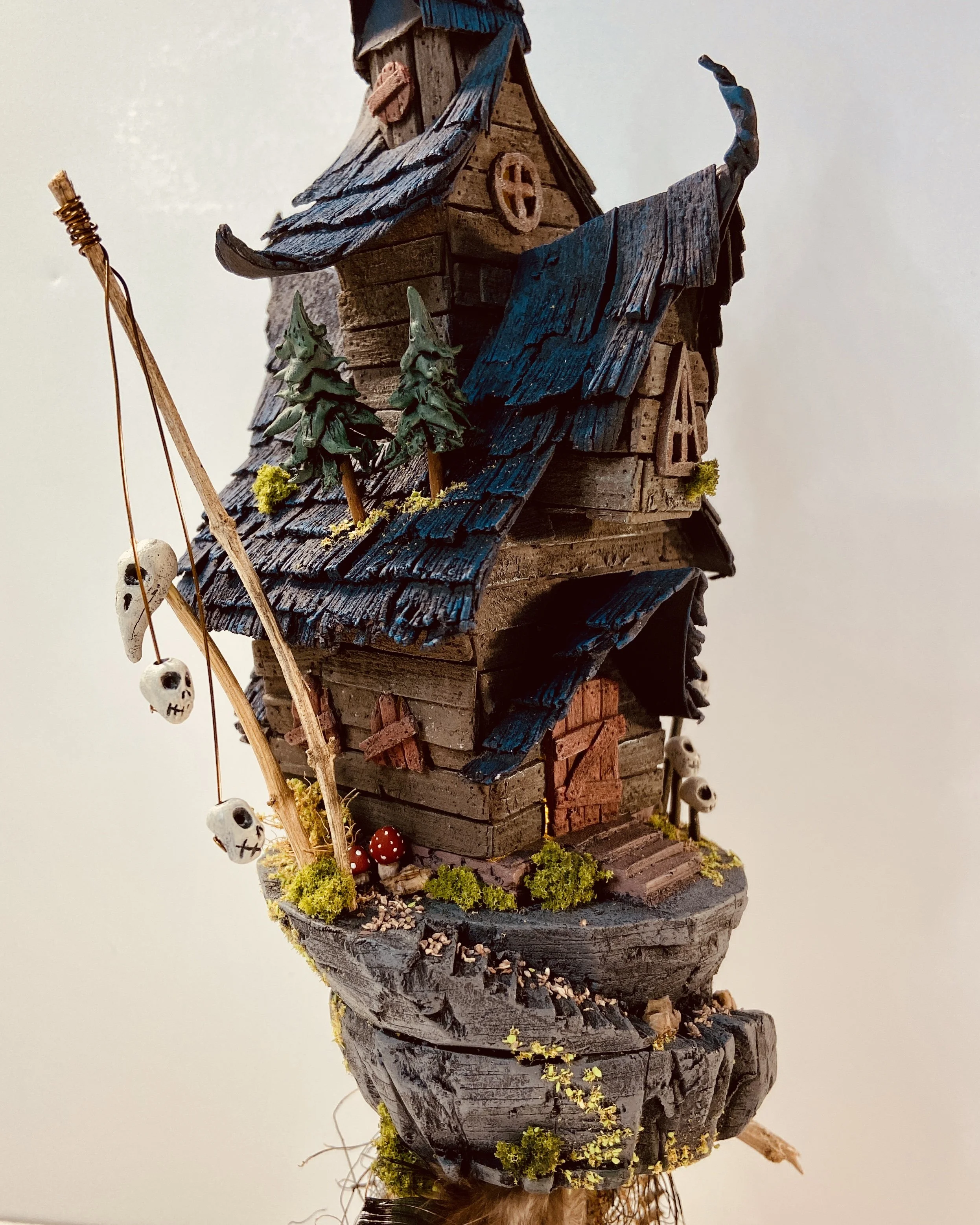 Materials: Cardstock, XPS foam, aluminum wire, polymer clay, chalk paint, acrylic paint